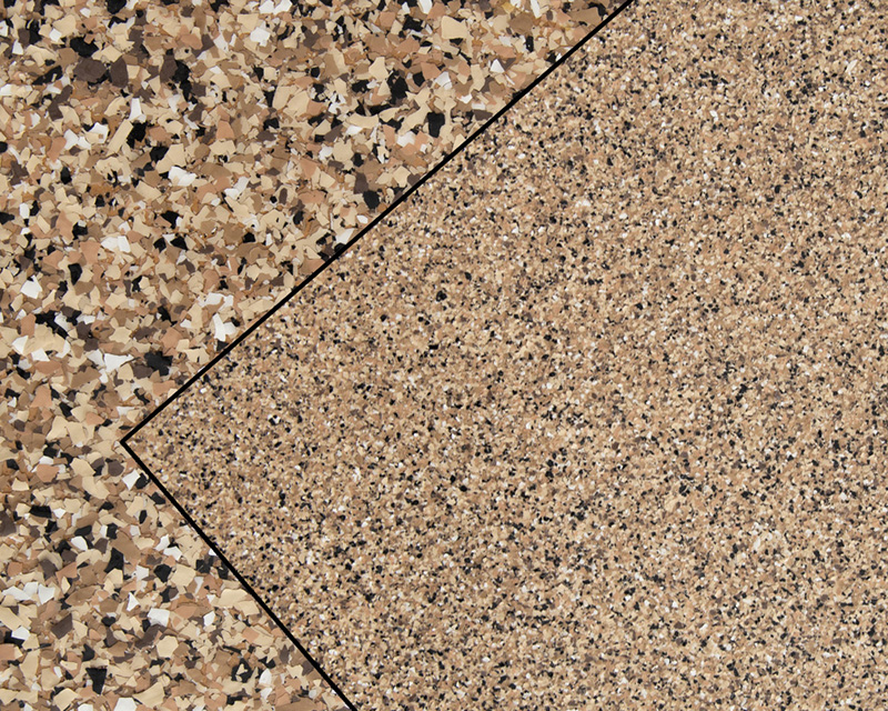 We offer two different sizes in our colored flakes. The standard ¼ inch and the smaller 1/16-inch size. If you are looking for something different, our smaller 1/16 might be just what you are looking for. Over the years some of our customers love the smaller chips for their basement and offices. Although we have installed both sizes in many different locations.